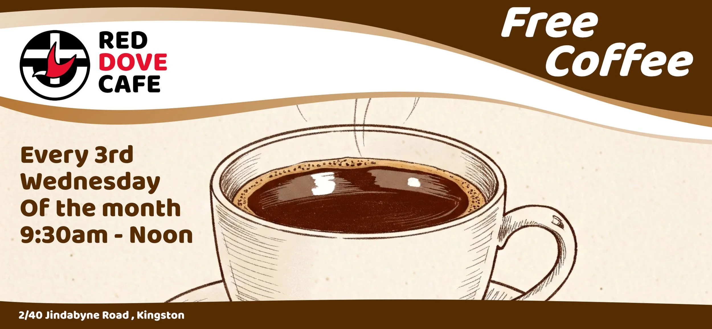 Please join us on the 3rd Wednesday of the month at our free coffee shop! Red Dove Cafe - we offer beautiful views over Kingston across the Derwent along with FREE Barista made coffee and delicious home made snacks. This is a relaxed, warm friendly environment to just enjoy the view or time with friends.